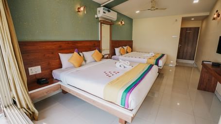 Our Premium Rooms offer 377 sq. ft. of space for four guests. Each room boasts a private balcony with stunning views and is equipped with modern amenities.